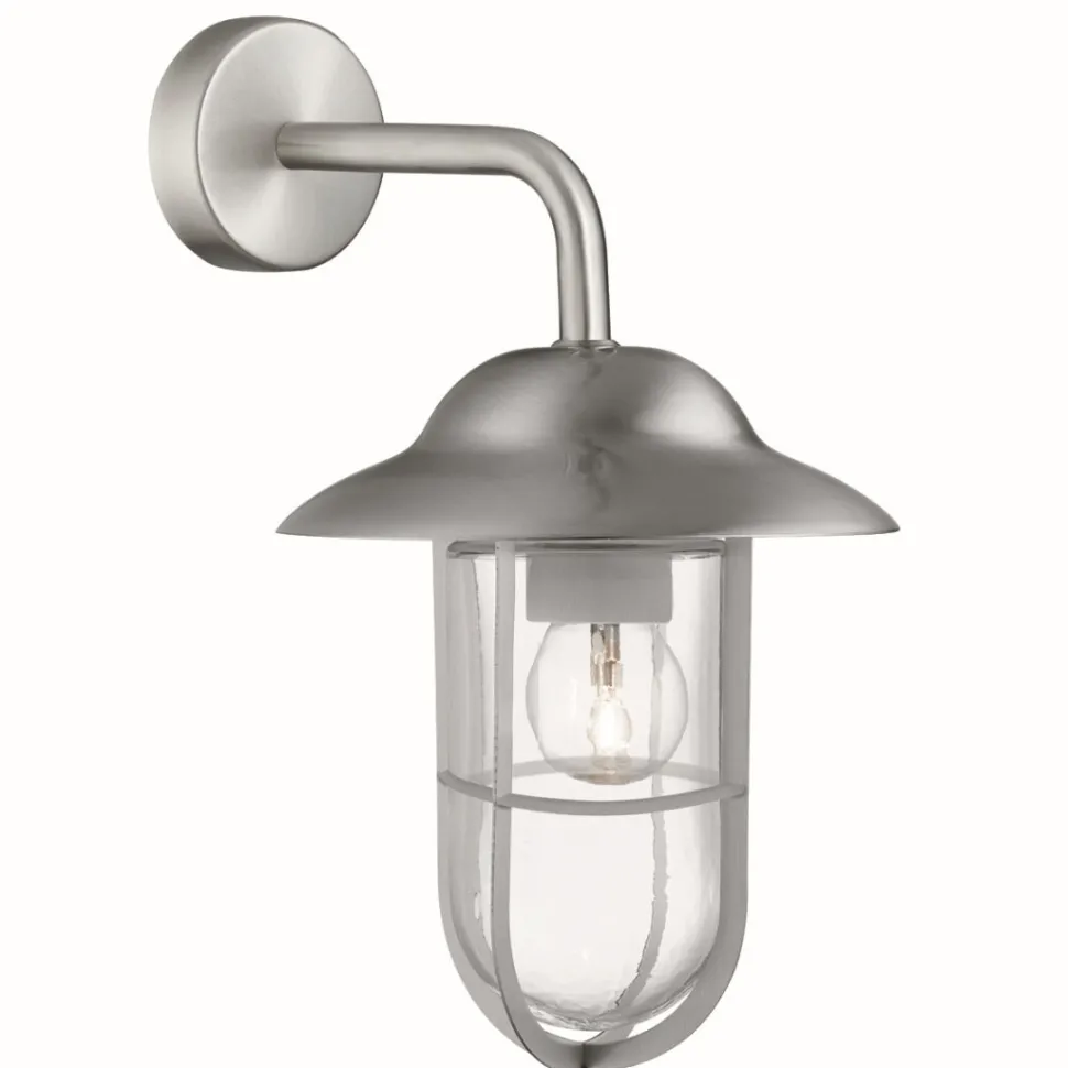 Maritim Leuchte in Silber satiniert, Transparent aus rostfreier Stahl,Glas