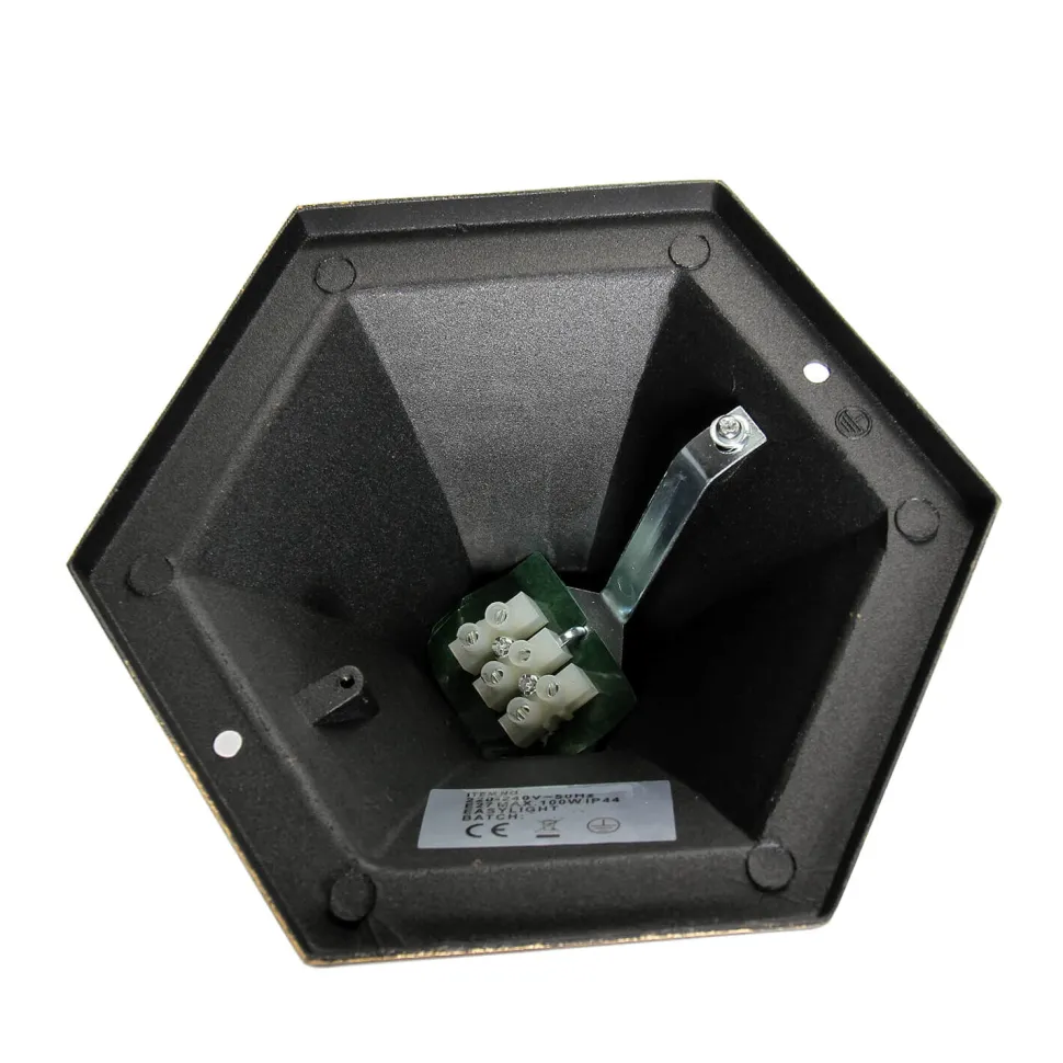 Die Lampe besteht aus witterungsbeständigem Aluminiumspritzguss und robustem Glas