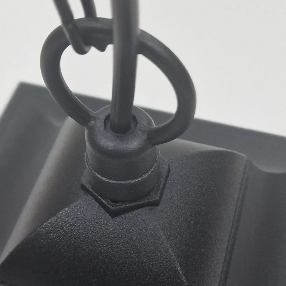 Das zeitlose Schwarz unterstreicht den rustikalen Stil der Pendelleuchte und setzt in jedem Eingang und jedem Balkon stilvolle Akzente