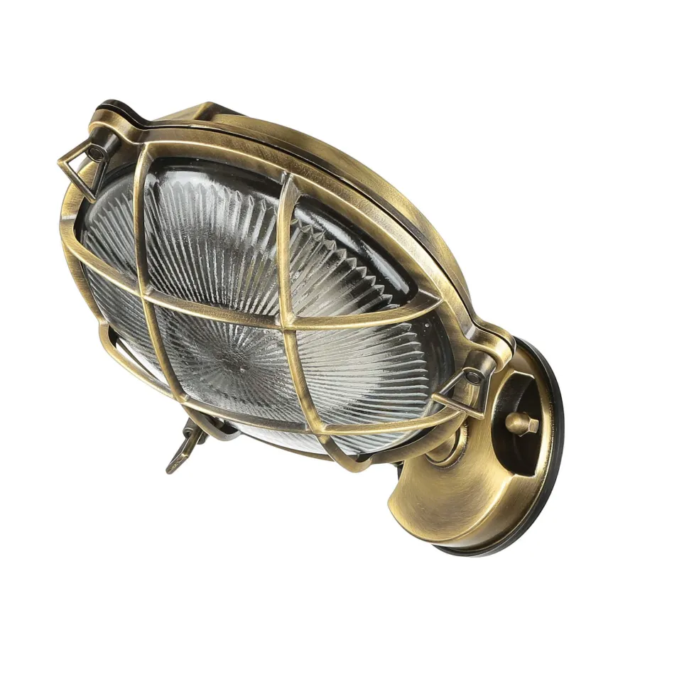 Maritime Außenwandlampe aus massivem Messing im Stil eines antiken Bullauges