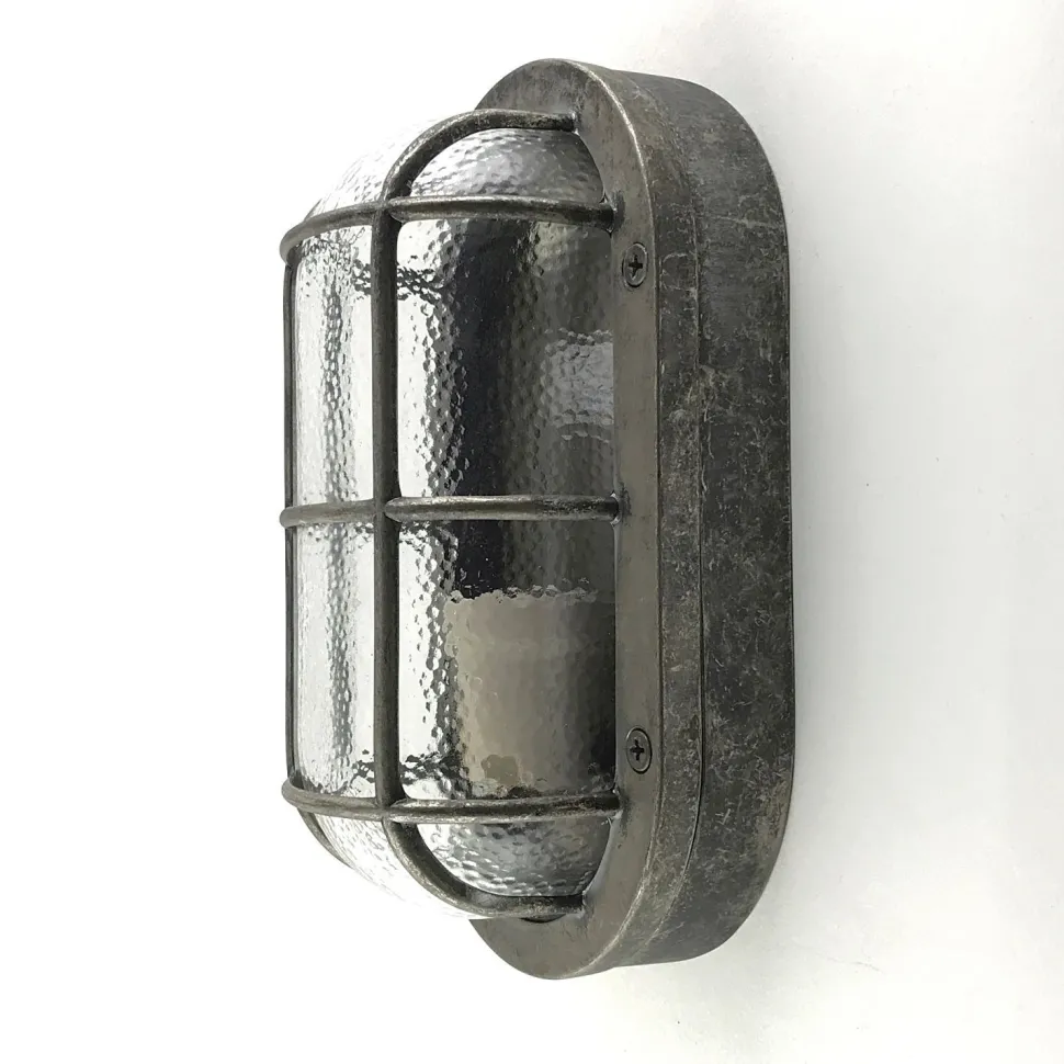 Maritime Außenwandleuchte aus massivem Messing und kunstvollem Glas in Zinn: ideal als Haustür Lampe, Terrassenbeleuchtung, Balkon Lampe, Carport Beleuchtung und Garagenlampe