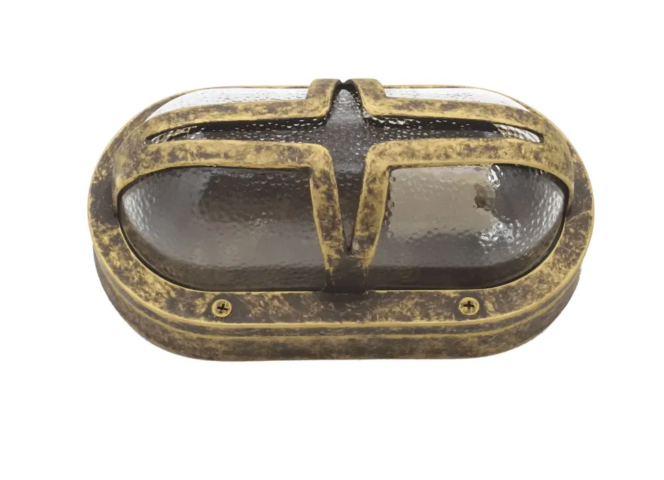Maritime Außenwandleuchte aus massivem Messing und kunstvollem Glas in verwittertem Messing: ideal als Haustür Lampe, Terrassenbeleuchtung, Balkon Lampe, Carport Beleuchtung und Garagenlampe