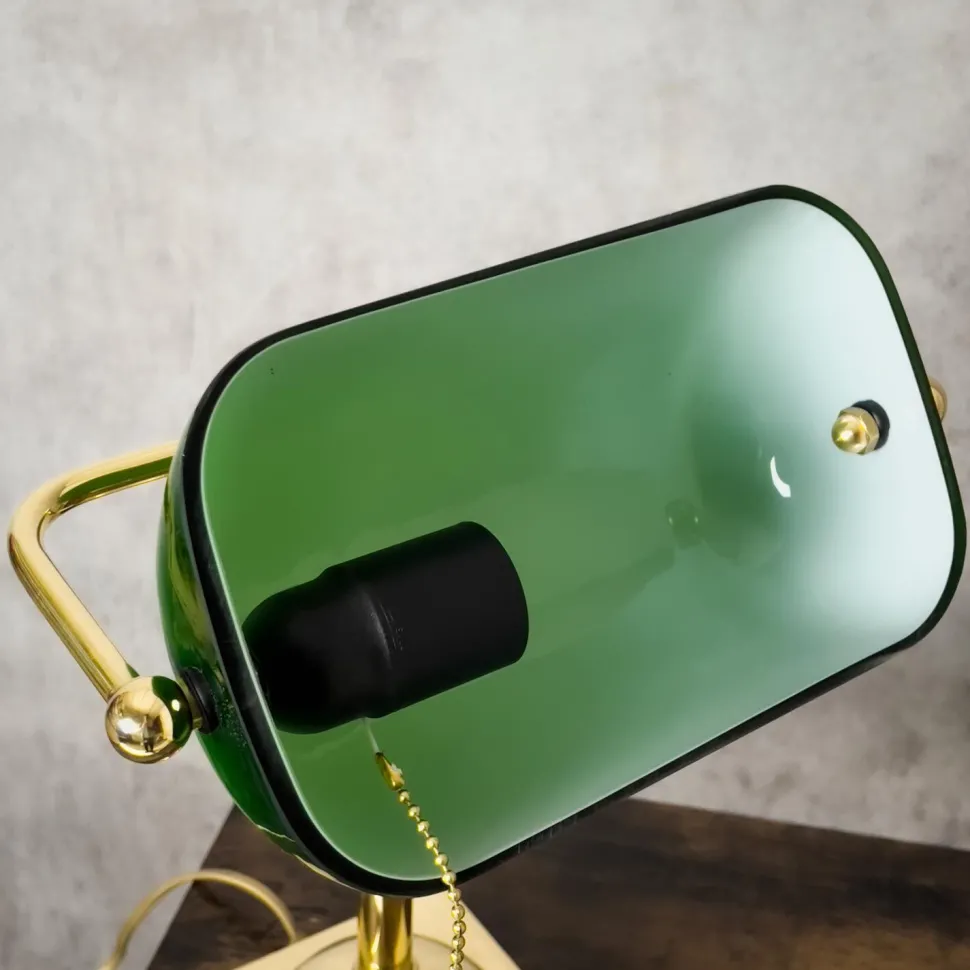 Edle Bankerlampe mit Zugschalter aus massivem Messing und Glas