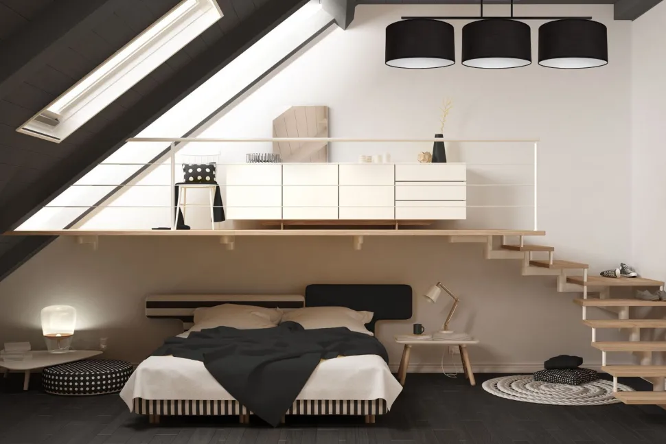 Die schwarzen Stoffschirme sind dekorativ und streuen das Licht diffus und blendarm in den Raum