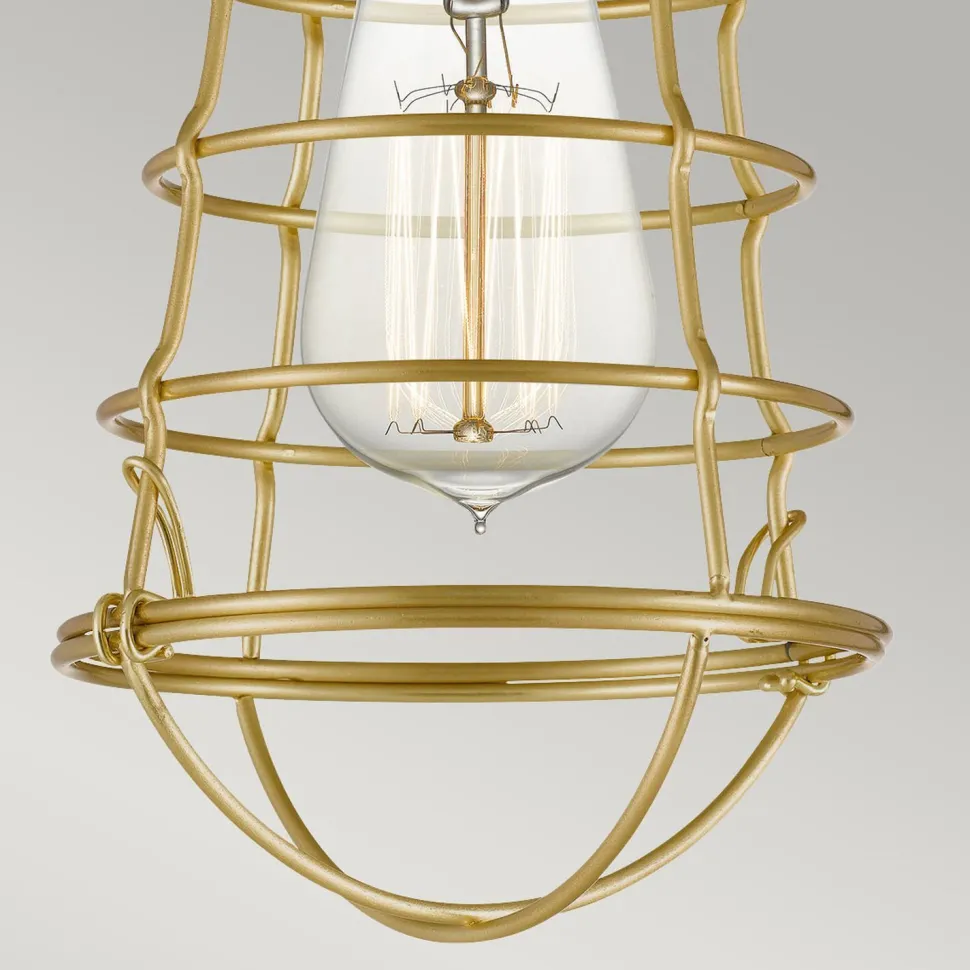 Elegante Metall Deckenlampe mit Käfig Schirm in gebürstetem Messing