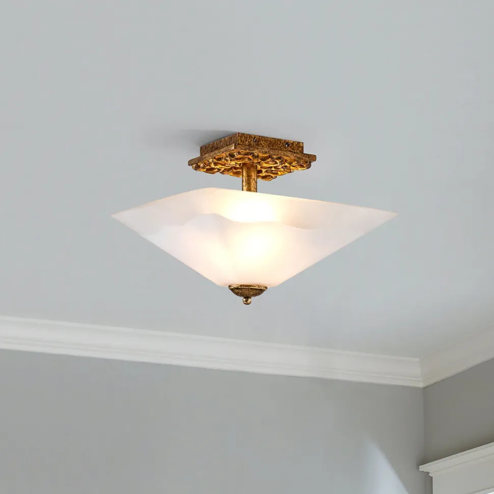 Details in Gold antik unterstreichen den edlen Charakter und verleihen der Deckenlampe einen dekorativen Look – ein absoluter Blickfang in jedem Raum