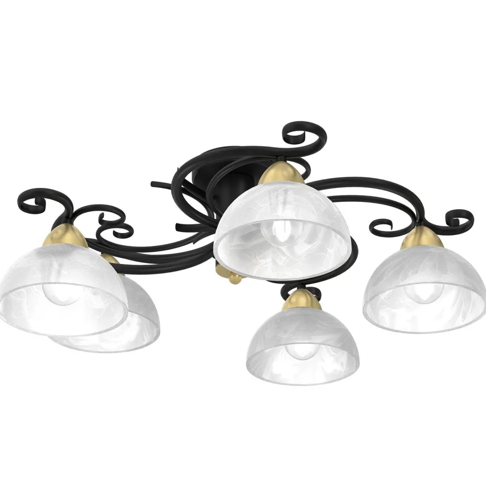 Landhaus Deckenlampe aus Stahl und Glas in Schwarz, Weiß und Antik Messing