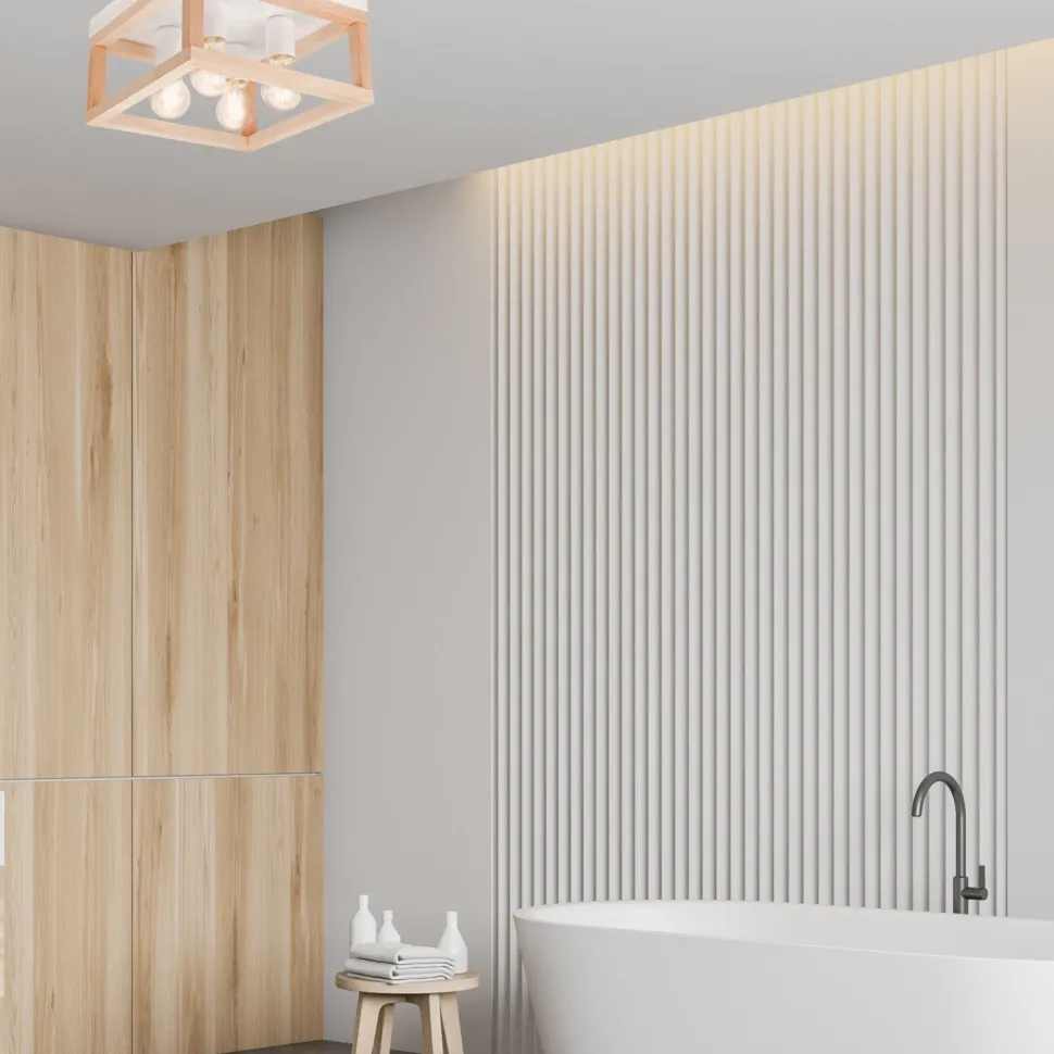 Die Kombination der Materialien sorgt für einen wohnlichen Look, wodurch die Deckenleuchte in jedem Raum zu einem echten Blickfang wird