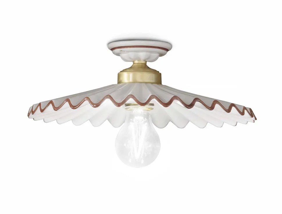 Elegante Keramik Deckenleuchte im rustikalen Landhaus Stil mit kunstvollem Lampenschirm in Faltenoptik