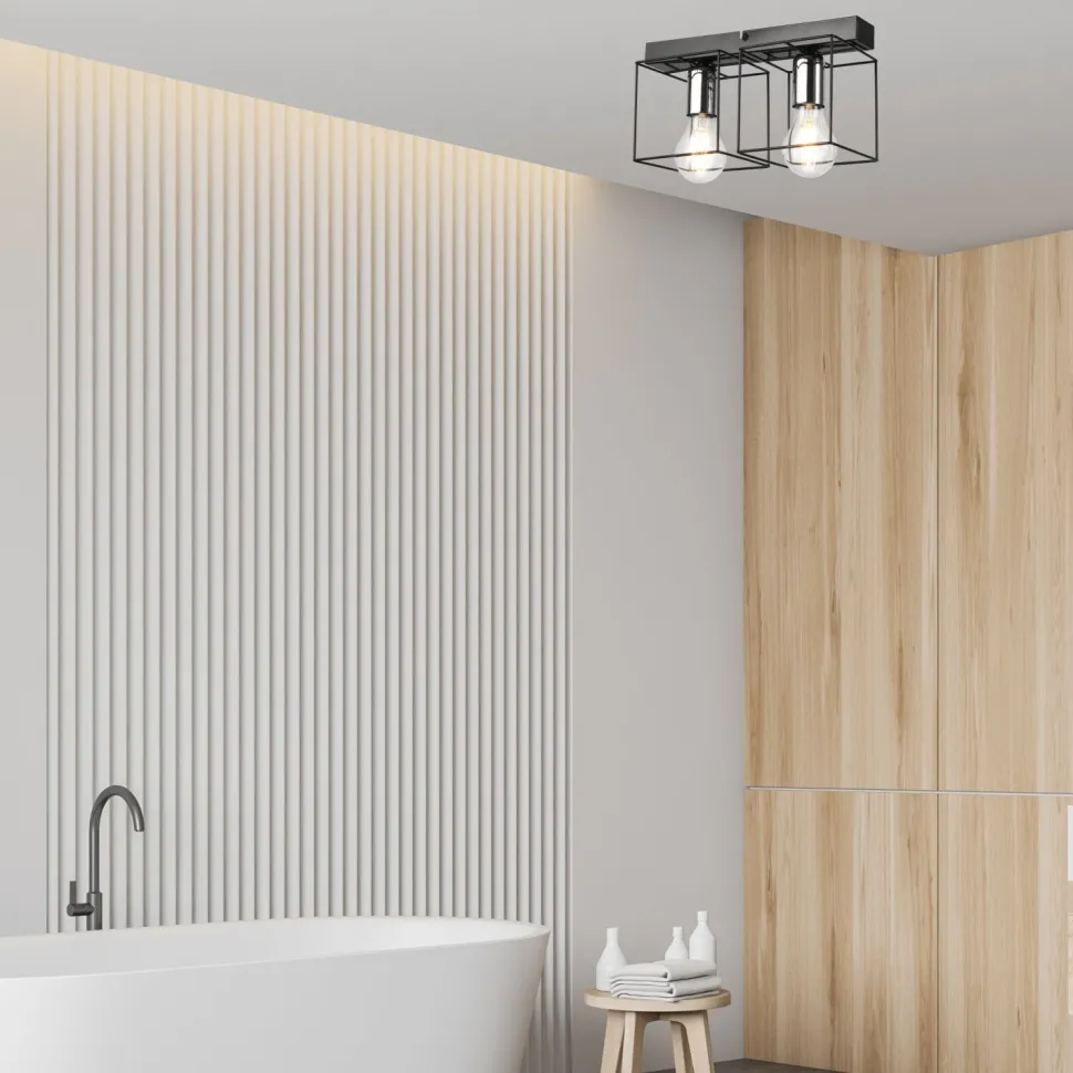 Kleine Deckenlampe aus Metall in Schwarz und Chrom