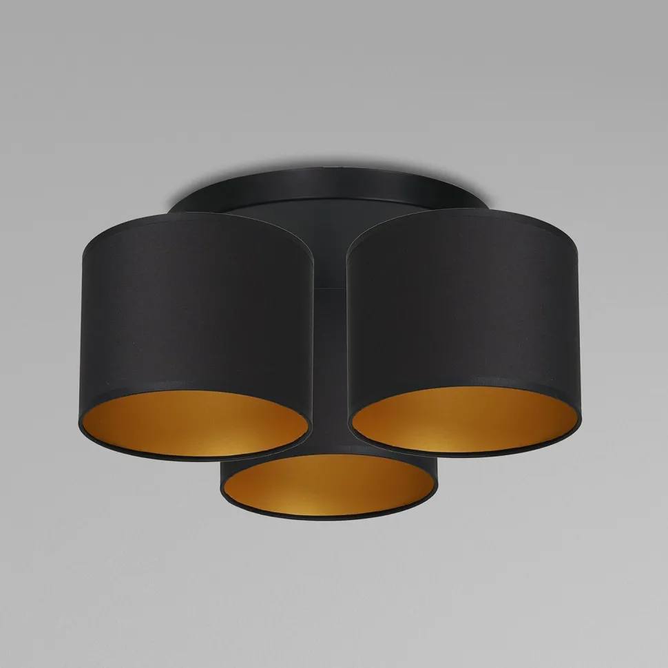 Zeitlose Deckenlampe aus lackiertem Stahl, Stoff und Kunststoff in Schwarz und Gold