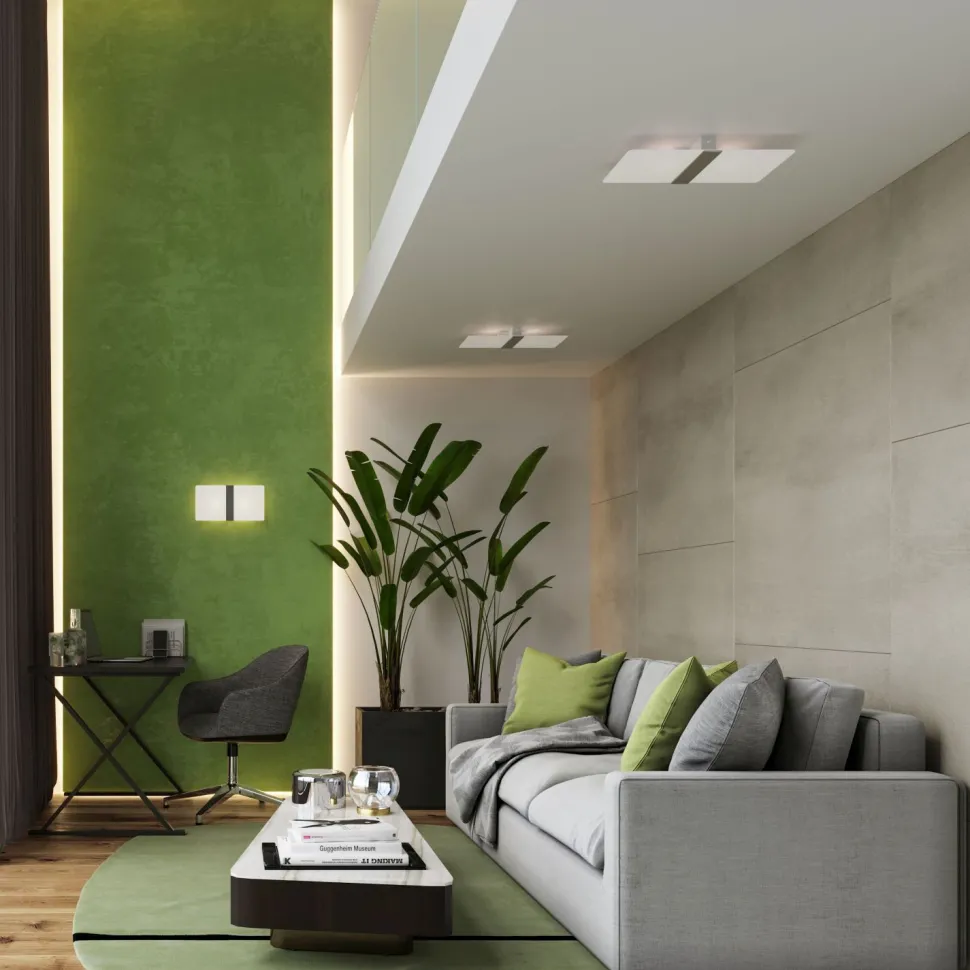 Das Licht wird blendarm gestreut, was eine angenehme und großzügige Beleuchtung in Wohnzimmer, Esszimmer und Flur erlaubt
