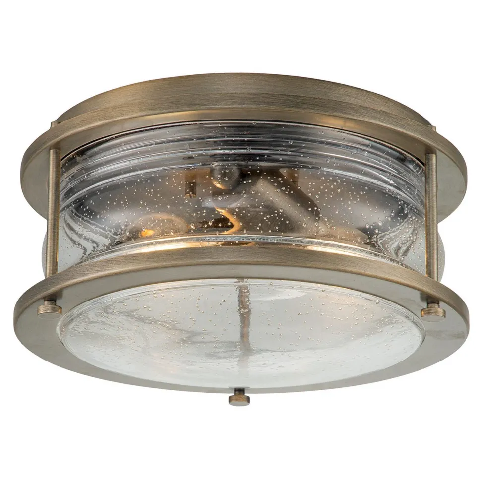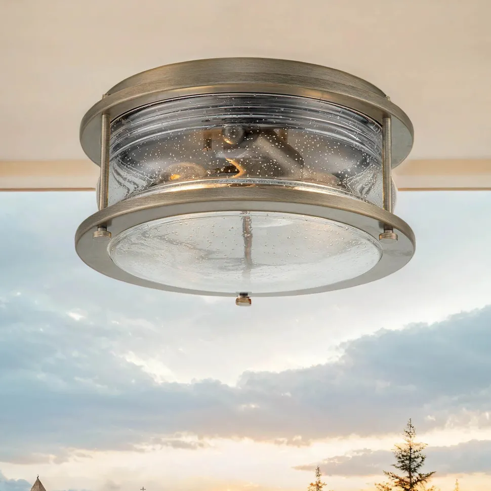 Runde Vintage Deckenlampe für außen aus robustem Aluminium und kunstvollem Glas