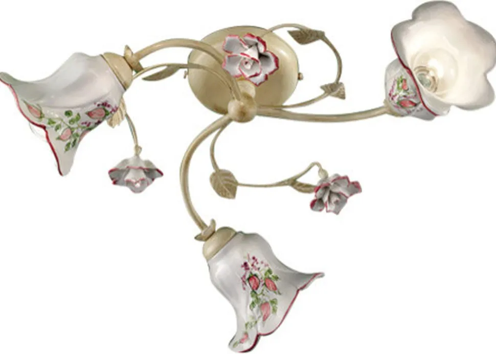 Florale Deckenleuchte mit kunstvollem Keramik Lampenschirm