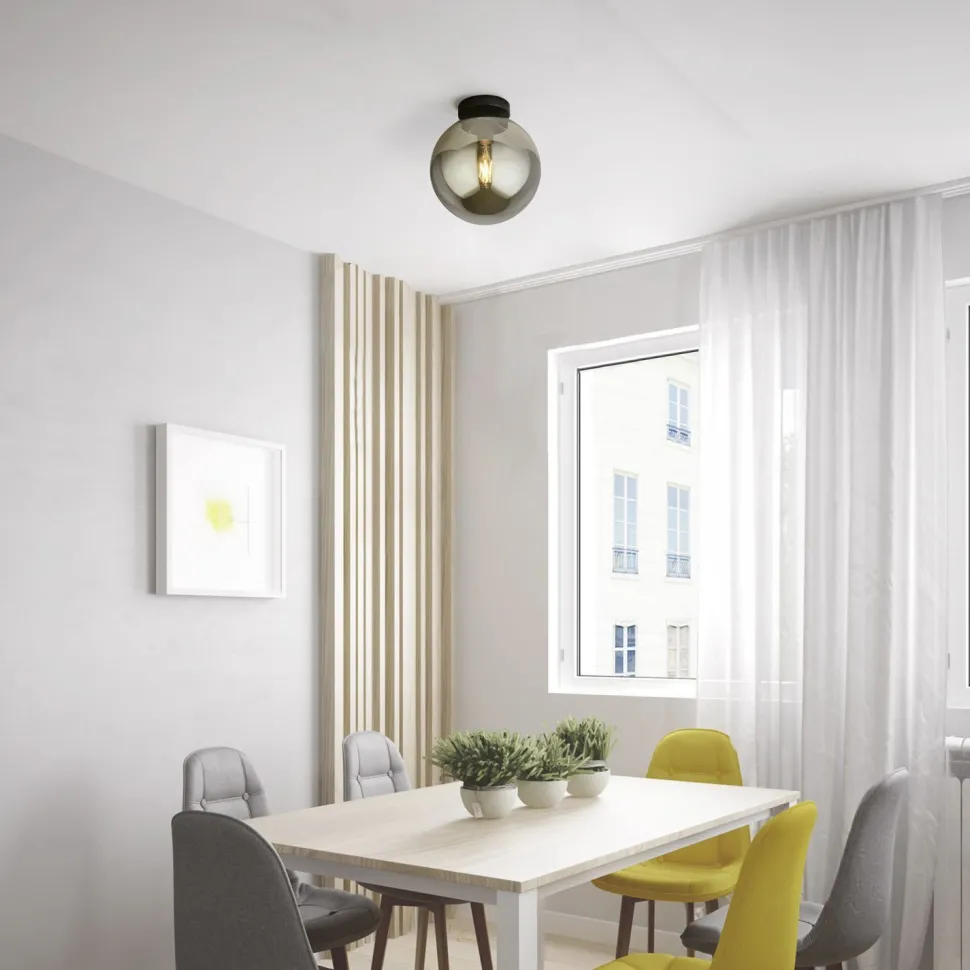 Das Rauchglas verleiht dem Kugelschirm einen besonderen Look, was aus der Deckenleuchte einen absoluten Blickfang macht