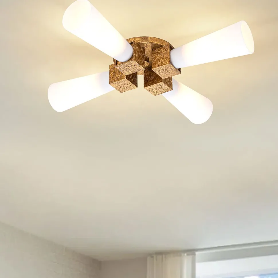 Die Oberfläche in Gold verleiht der Deckenlampe einen kunstvollen Charakter, der in jedem Raum zu einem absoluten Blickfang wird