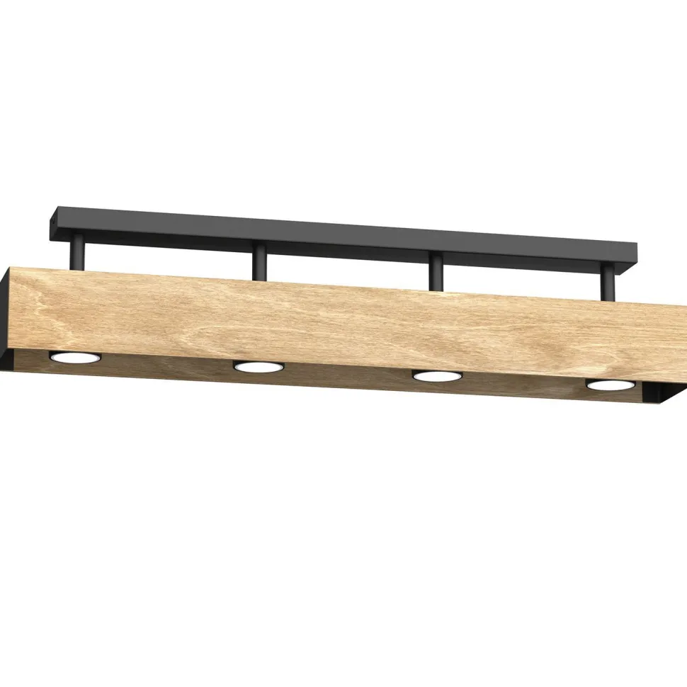 Natürliche Deckenlampe aus lackiertem Stahl und Holz in Schwarz und Natur