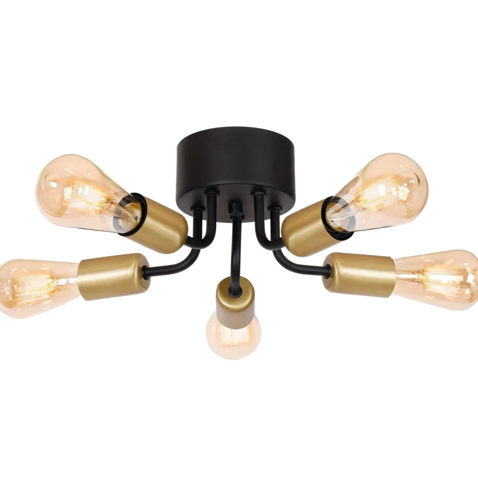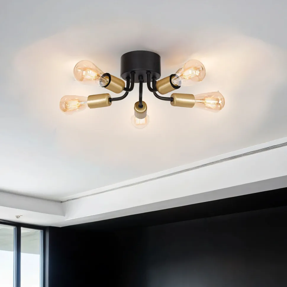 Flache Deckenlampe in Schwarz und Gold