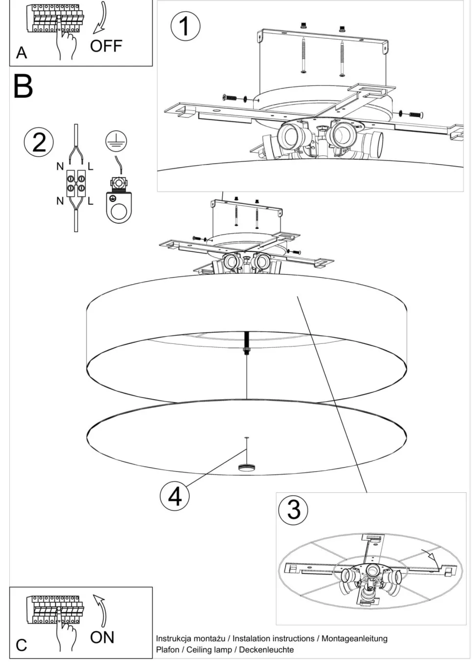Dank ihrer geringen Höhe passt die Deckenlampe auch in Räume mit niedrigen Decken