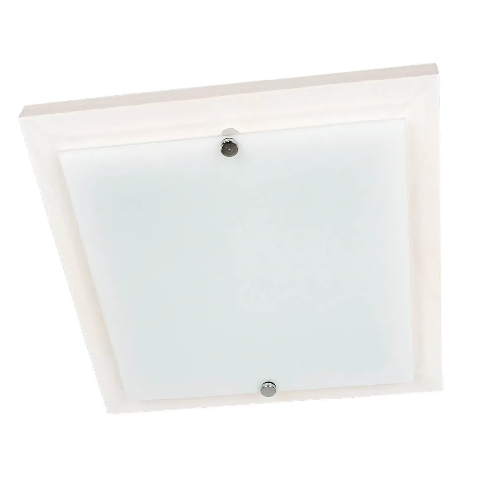 Flache Deckenlampe aus Holz und Glas