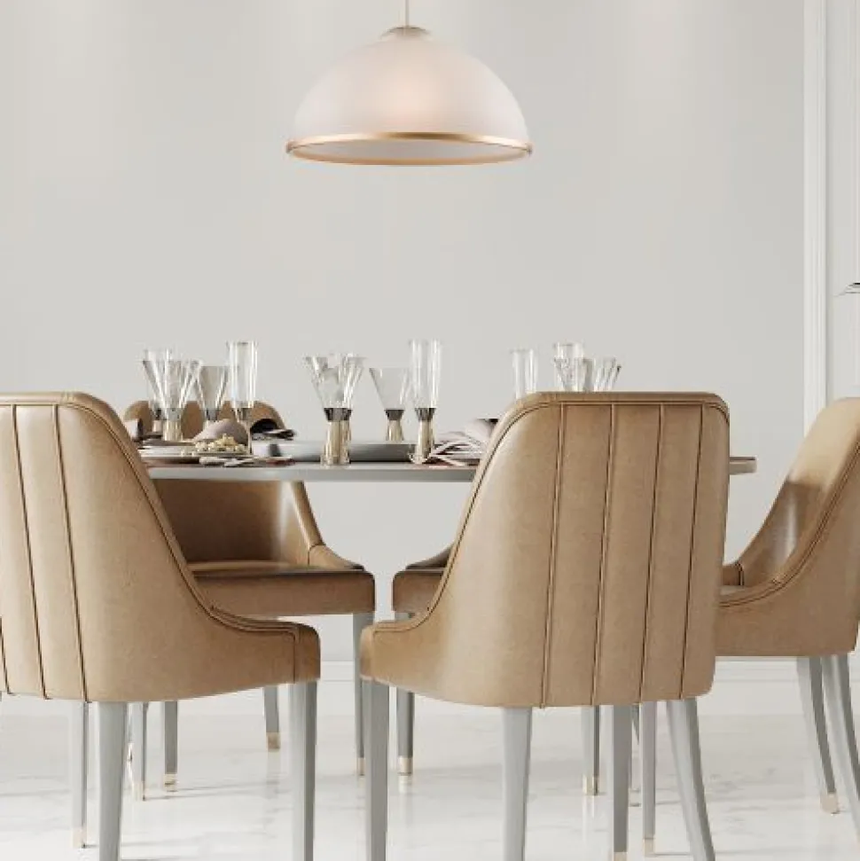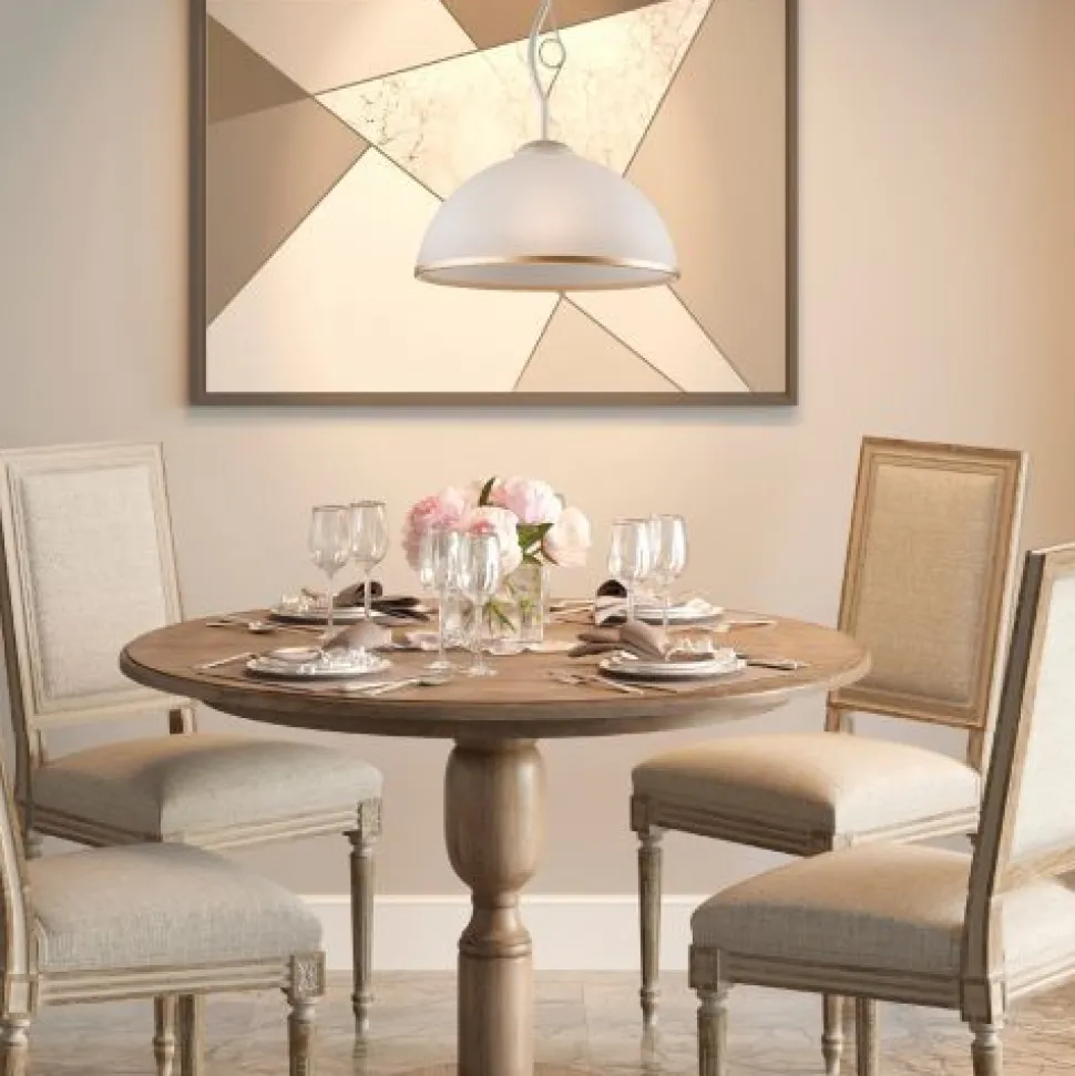 Das Licht wird durch den satinierten Glas Schirm blendarm gestreut und sorgt für eine angenehme Beleuchtung