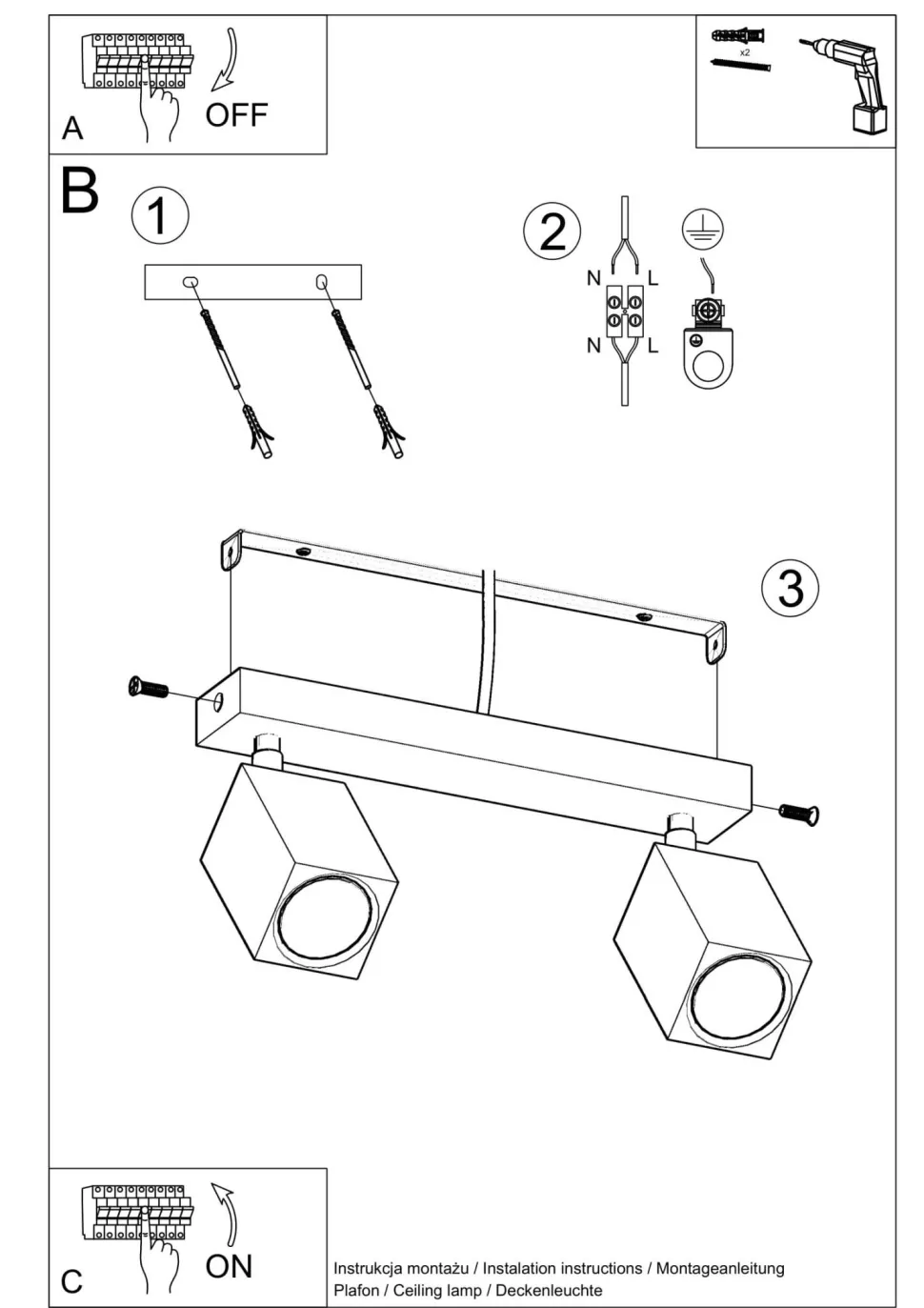Die Deckenleuchte erlaubt dank der dreh- und schwenkbaren Schirme eine zielgerichtete Beleuchtung und passt ideal in Wohnzimmer, Küche und Flur