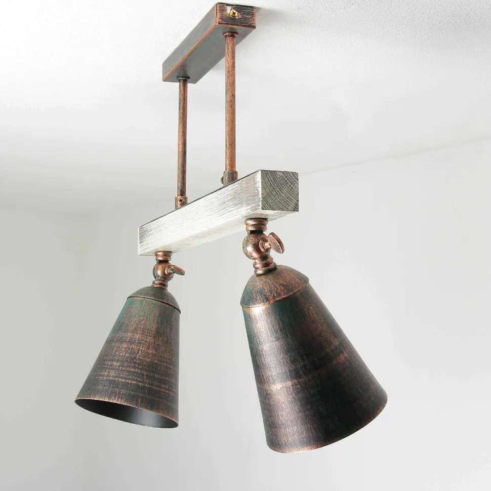 Vintage Deckenstrahler aus Metall und Holz im Shabby Chic für Wohnzimmer, Küche und Flur