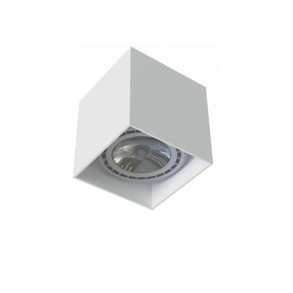 Die eckige Deckenlampe sorgt für einen schmalen Lichtkegel, was eine punktuelle Beleuchtung erlaubt