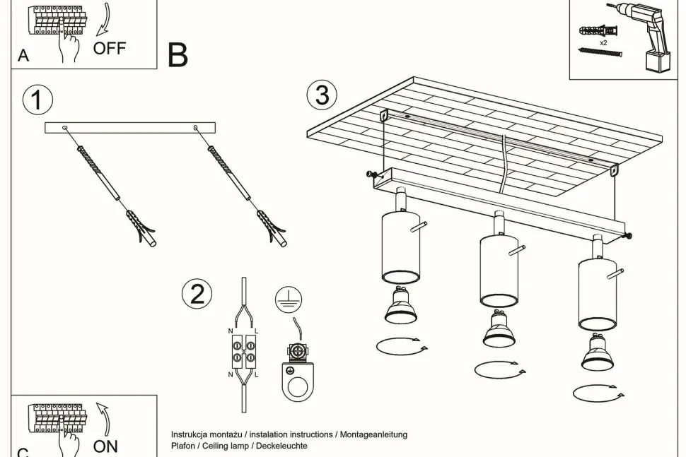 | Fassung: | 3x GU10 max. 40W |