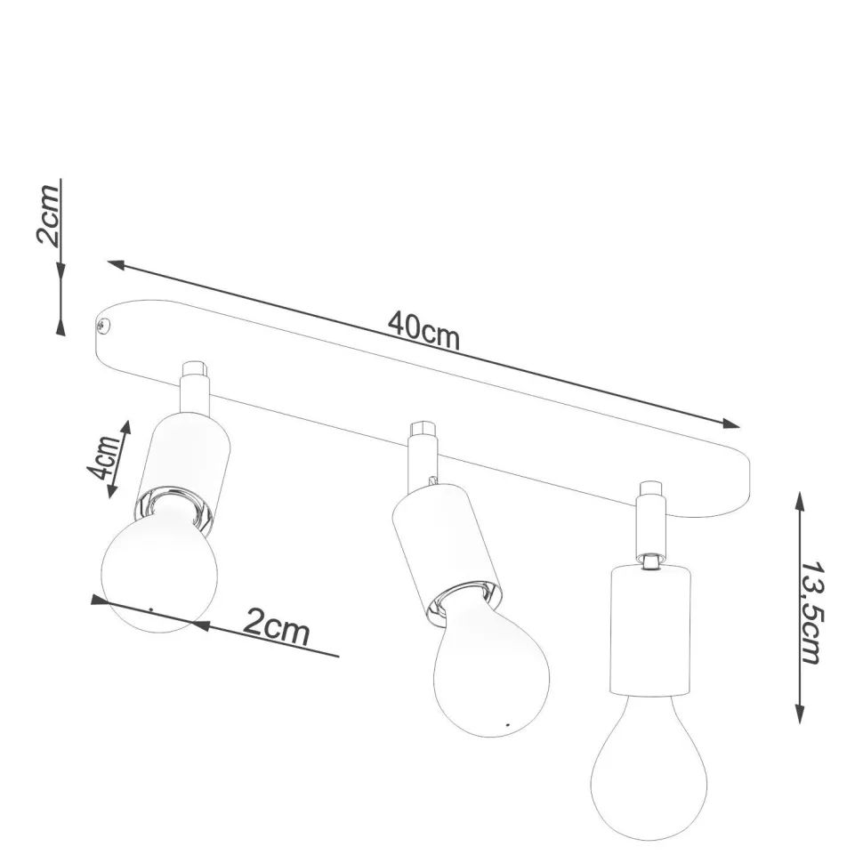 | Maße: | Breite: 60 mm | Höhe: 135 mm | Länge: 400 mm | Durchmesser Schirm: 60 mm | Höhe Schirm: 40 mm | Durchmesser Sockel/Wandhalterung: 60 mm |