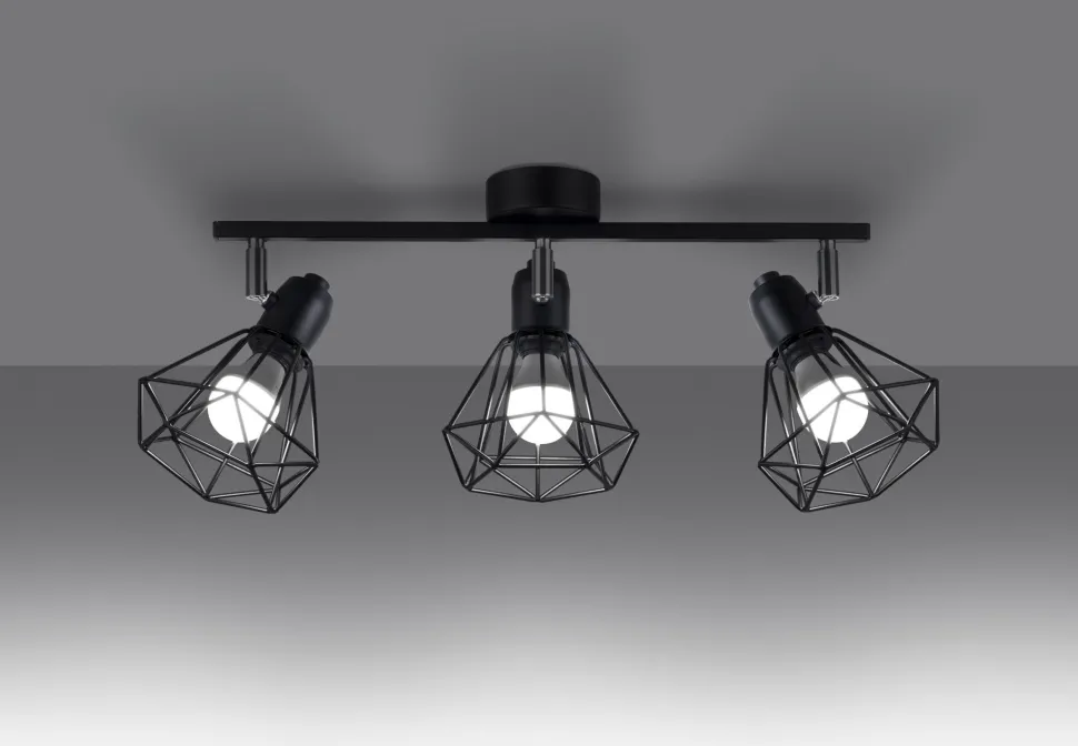 Schwarzer Deckenstrahler mit Draht Schirmen