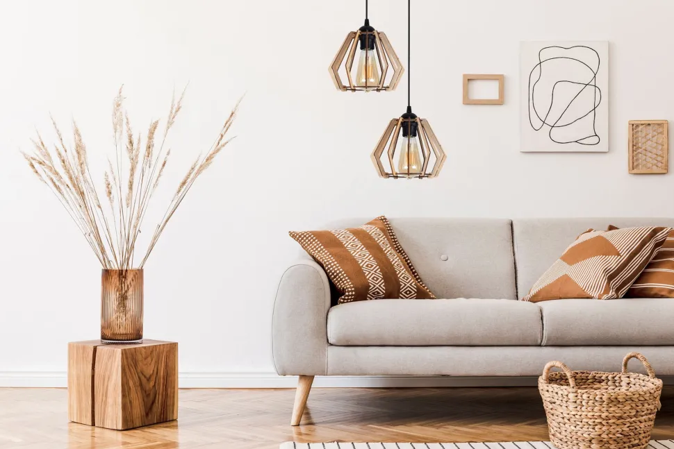 Die offenen Holz-Schirme sorgen für Wohnlichkeit in Deinem Zuhause – perfekt als Pendelleuchte über dem Esstisch in Wohnzimmer und Esszimmer