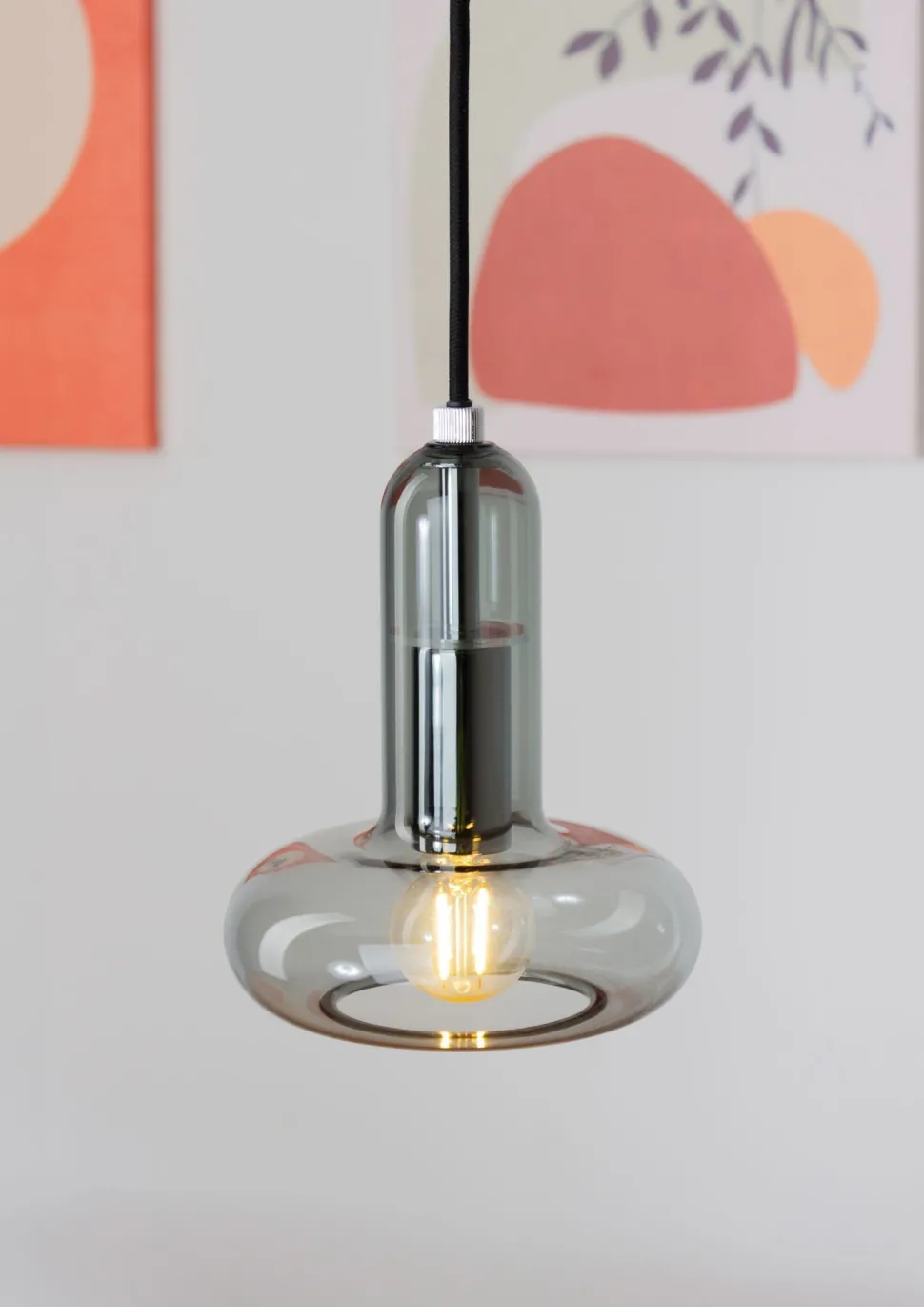 Moderne Hängelampe mit Glasschirm in Rauchgrau