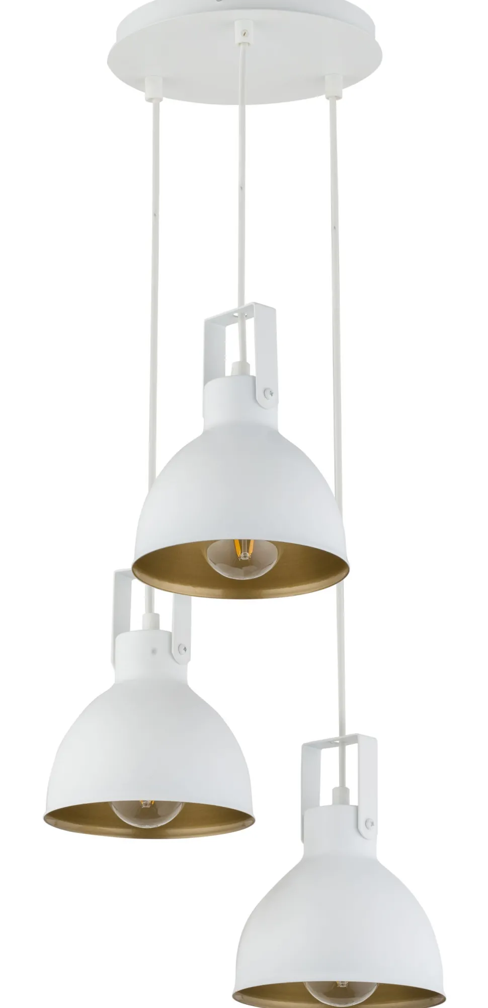 Industrie Hängelampe aus lackiertem Stahl in Weiß und Gold
