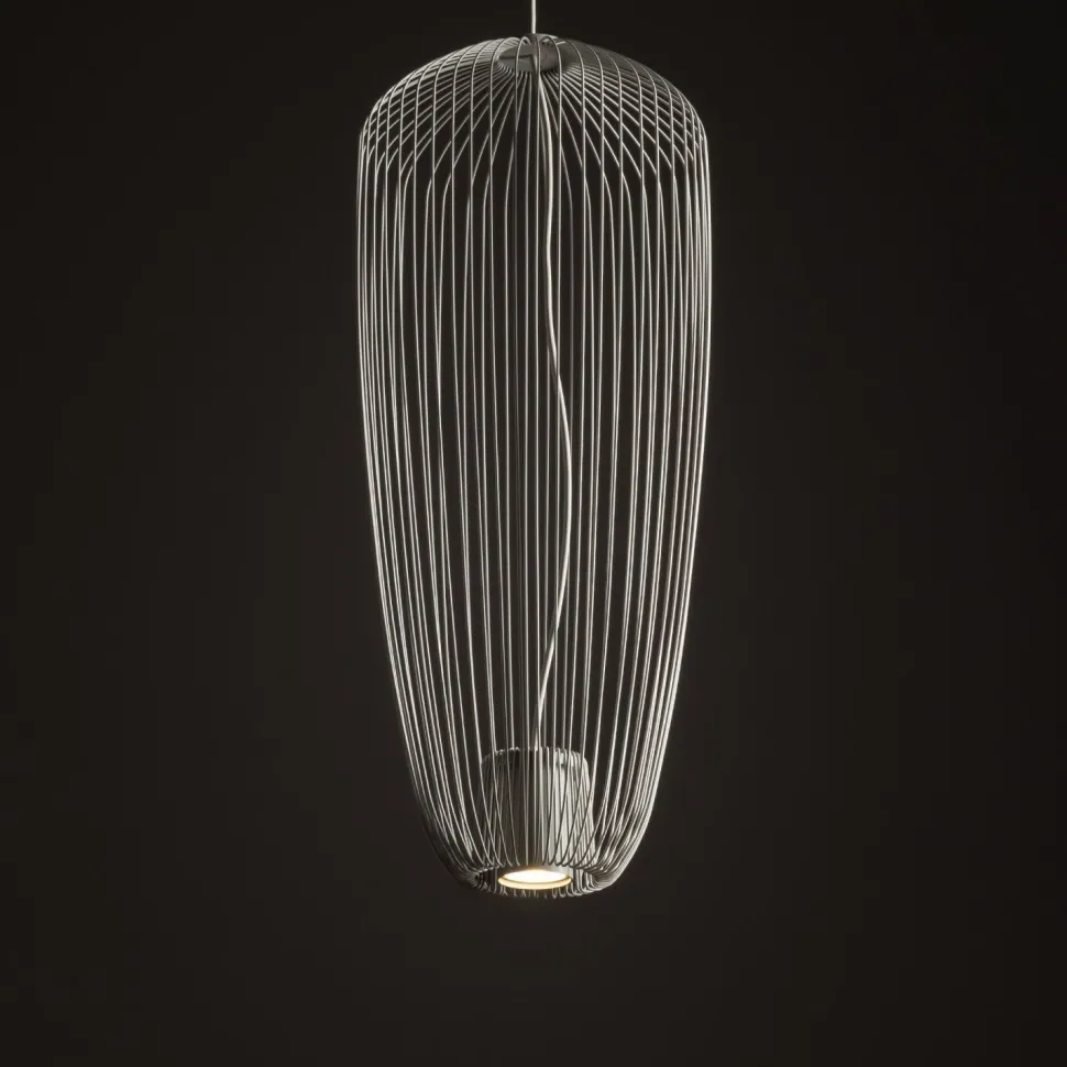 Moderne Hängelampe aus lackiertem Stahl in Seidengrau