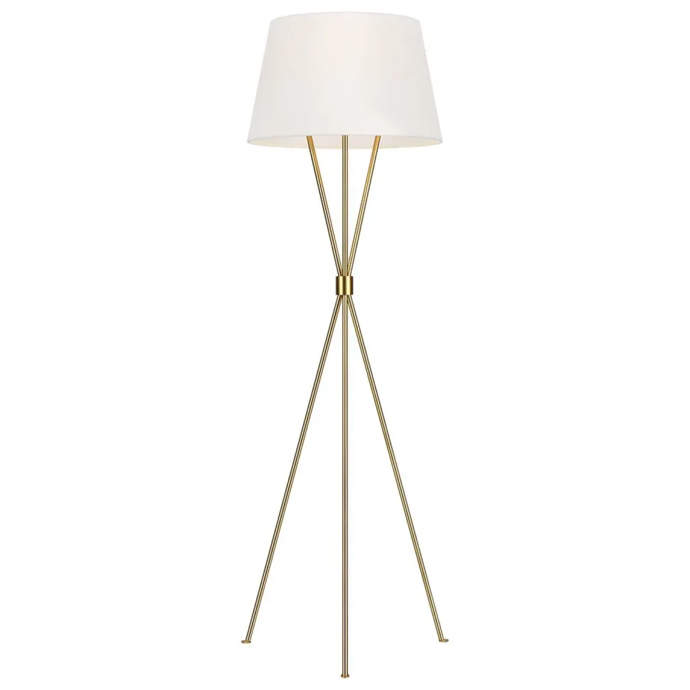 Kleine Stehlampe mit Dreibein Gestell in Messing brüniert