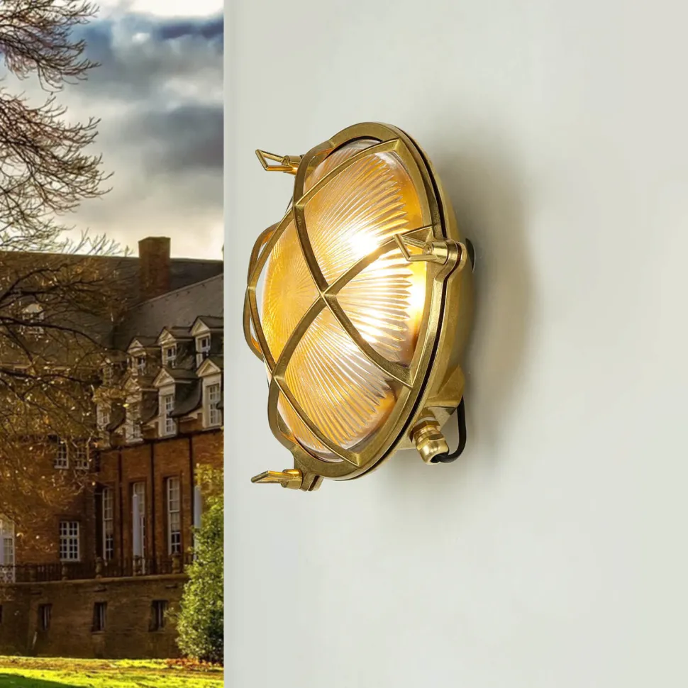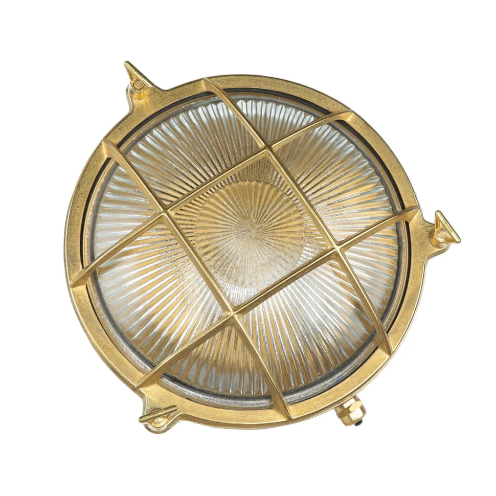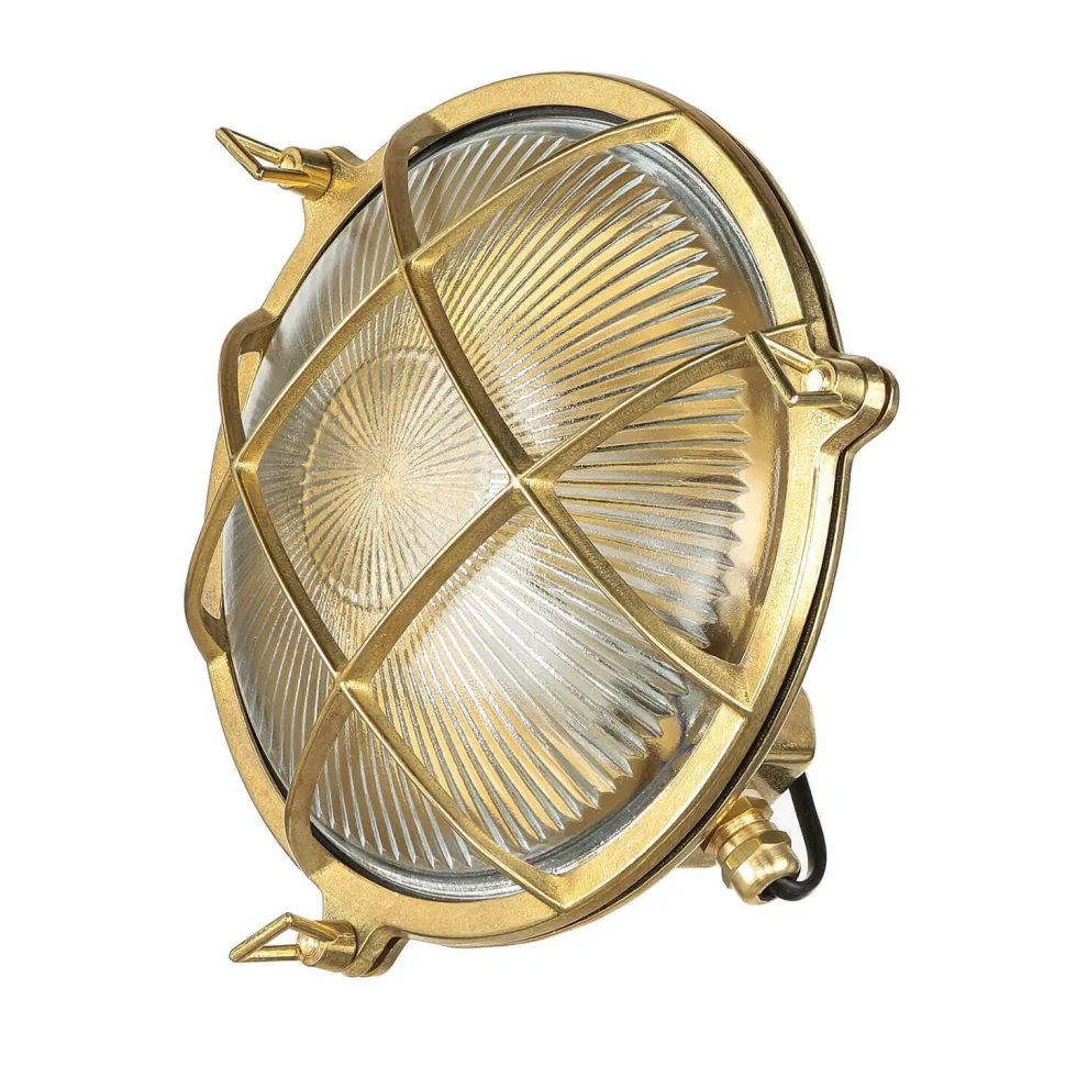 Runde Außenleuchte für die Wand aus Messing im maritimen Stil