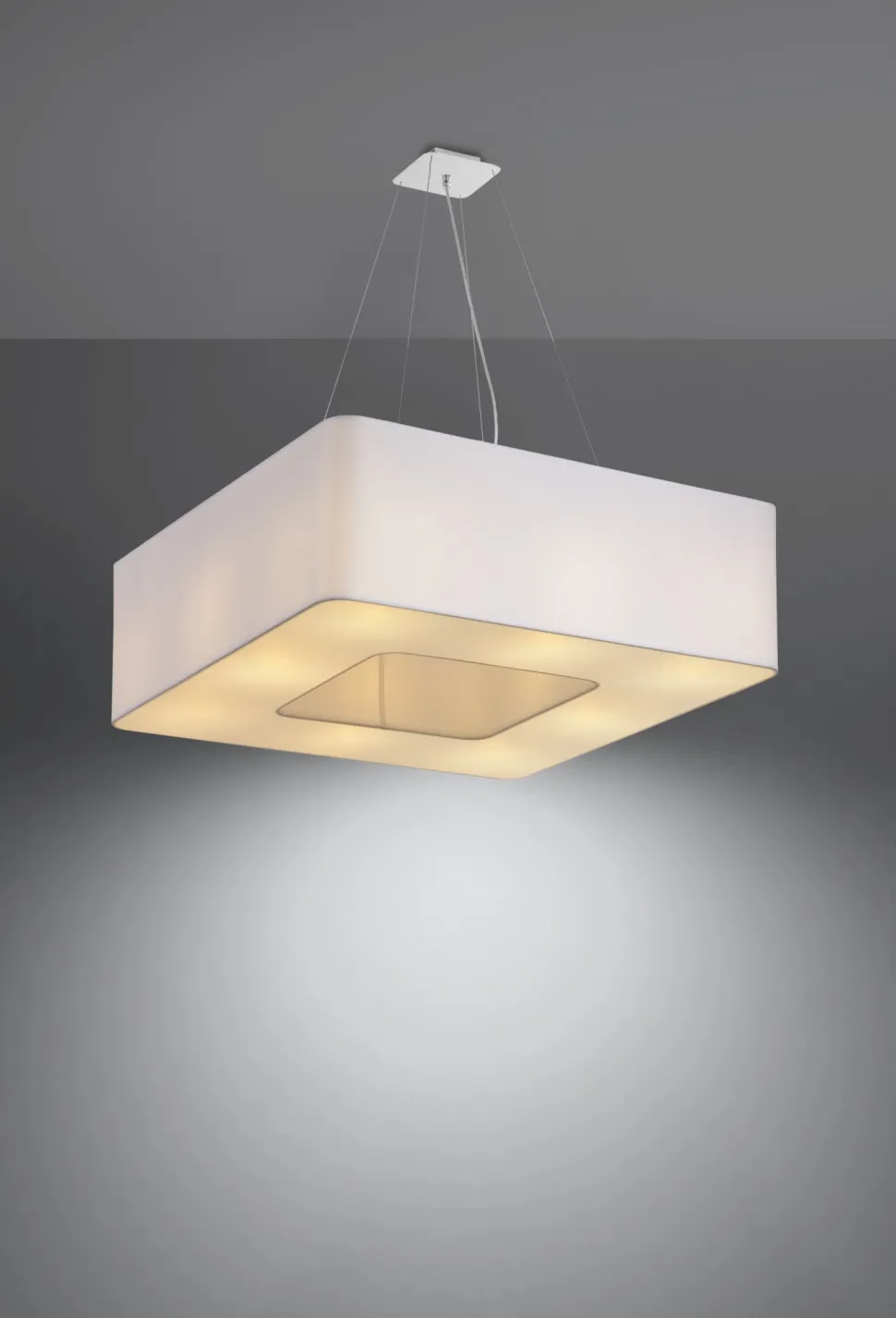 Elegante Hängeleuchte mit eckigem Stoffschirm