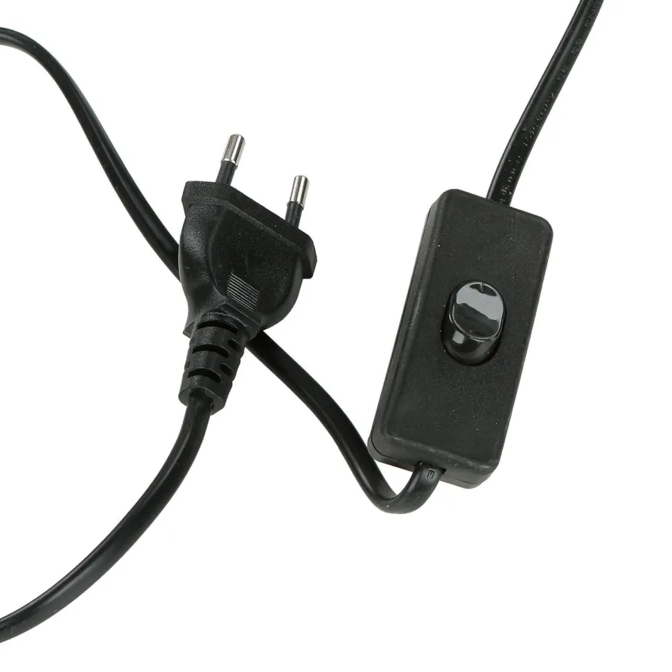 Das Gehäuse ist aus silbernem Aluminium und der Leuchtkörper aus robustem Glas, die Lampe wird mittels eines Kabelschalters eingeschalten