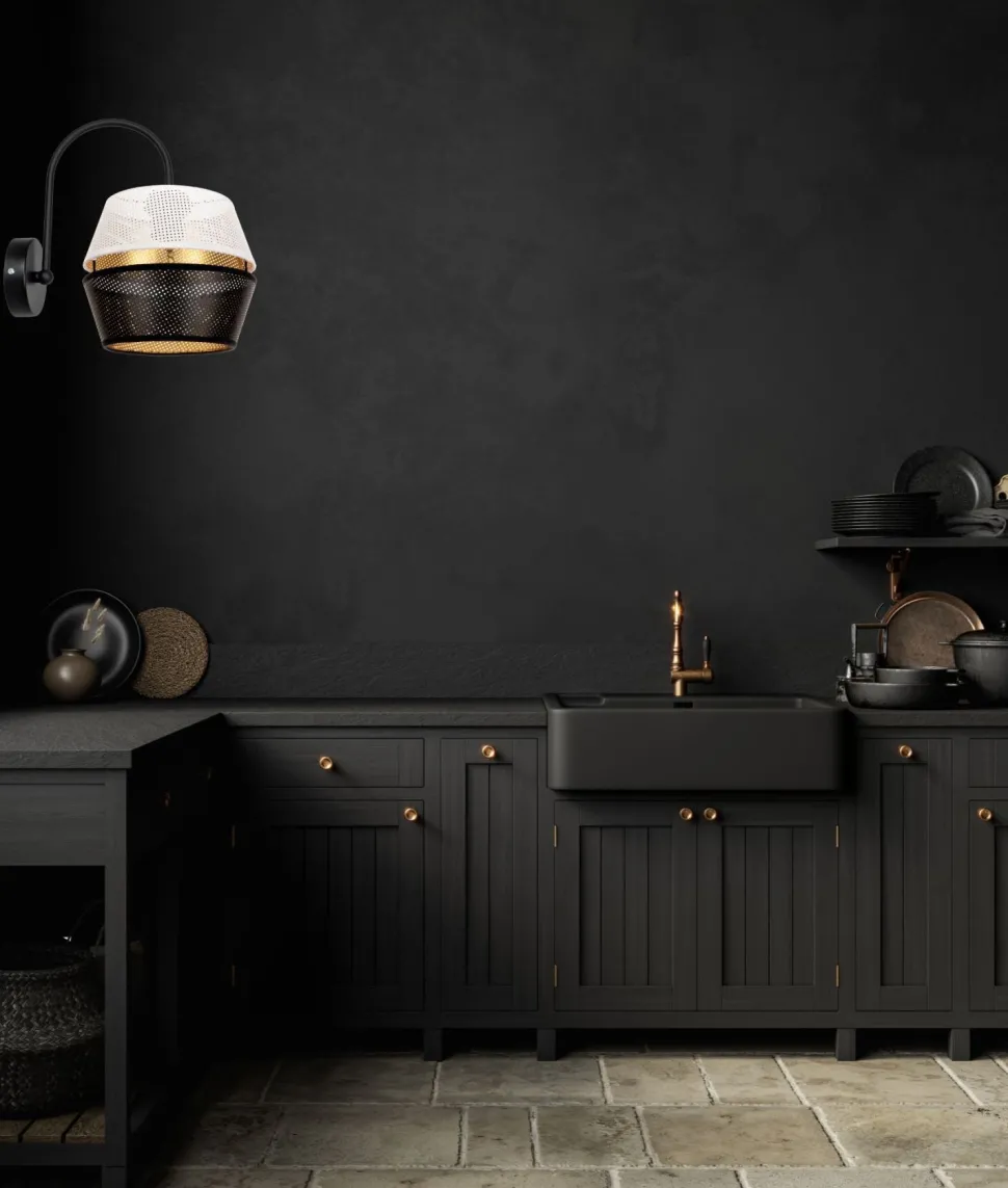Qualität Made in EU Entdecke die Loft Wandleuchte PATBOND – ein stilvolles Highlight für dein Zuhause! Mit ihrem eleganten Design in Schwarz, Weiß und Gold fügt sich diese Wandleuchte harmonisch in jedes Ambiente ein und setzt gleichzeitig beeindruckende Akzente. Die winzigen Löcher im Metallschirm sorgen für ein einzigartiges Lichterlebnis, das deine Räume in ein warmes, einladendes Licht taucht. Die PATBOND Wandleuchte ist nicht nur ein optisches Highlight, sondern auch äußerst funktional. Dank der freien Leuchtmittelwahl kannst du die Helligkeit und Lichtfarbe individuell anpassen – perfekt für stimmungsvolle Abende im Wohnzimmer oder eine helle, einladende Atmosphäre in der Küche. Mit einer Höhe von 250 mm und einer Tiefe von 250 mm ist sie ideal für verschiedene Räume, sei es im Wohnzimmer, in der Küche oder im Büro. Die Wandleuchte ist aus hochwertigem Metall gefertigt und überzeugt durch ihre „Made in EU“-Qualität. Mit einer Fassung für 1x E27 bis 60W und einer IP20–Schutzklasse ist sie für den Innenbereich bestens geeignet. Die dekorativen Lichtschlitze im Schirm sorgen nicht nur für eine ansprechende Lichtverteilung, sondern auch für einen modernen Look, der sowohl designbewusste als auch funktional orientierte Käufer anspricht. Setze mit der Loft Wandleuchte PATBOND stilvolle Akzente in deinem Zuhause und genieße die Flexibilität, die dir die freie Leuchtmittelwahl bietet. Lass dich von der Kombination aus Funktionalität und Ästhetik begeistern und verwandle deine Wände in wahre Lichtkunstwerke!