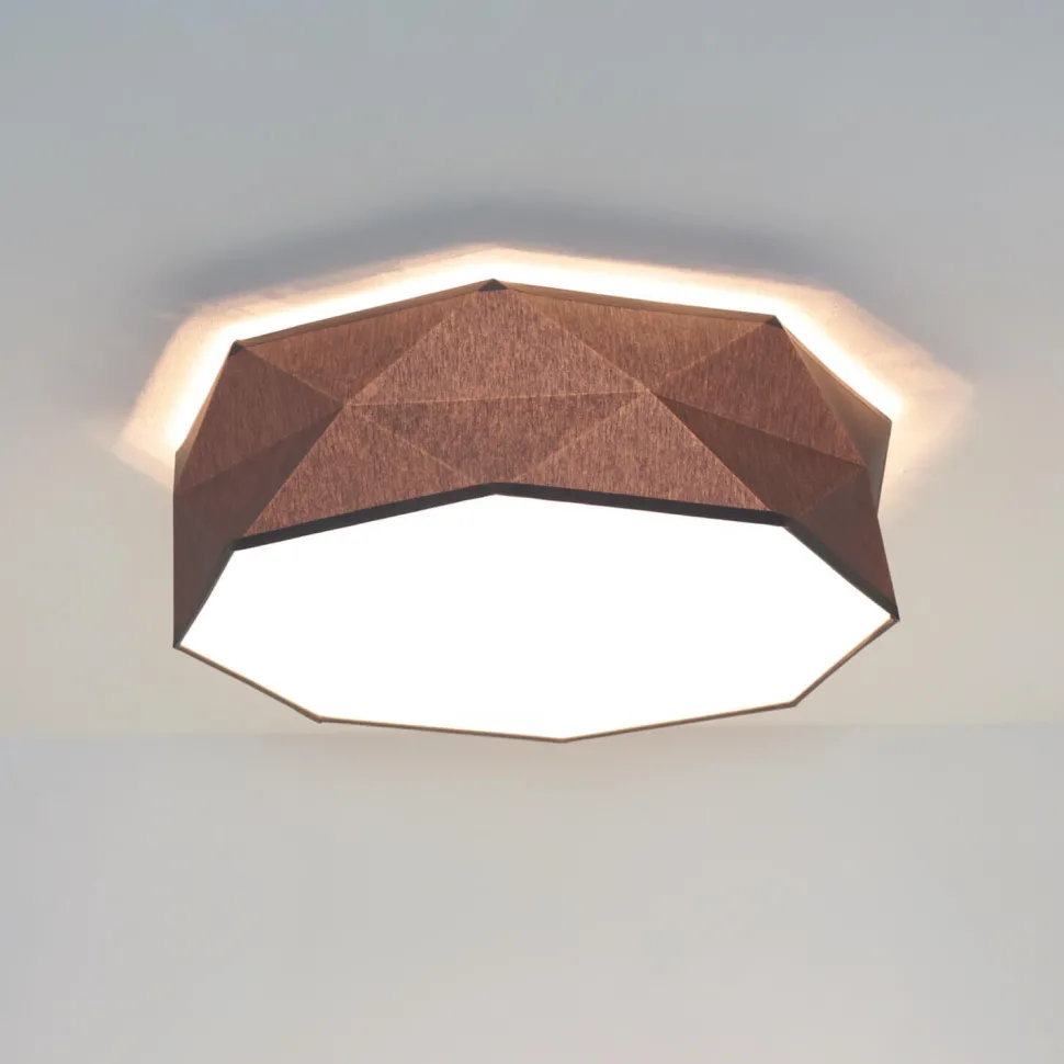 Der Schirm dieser Deckenleuchte ist eng an der Decke anliegend, sodass der Sockel nicht sichtbar ist
