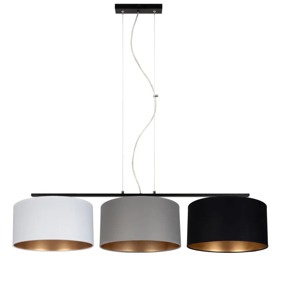 Qualität Made in EU Entdecke die perfekte Kombination aus modernem Design und funktionaler Eleganz mit unserer Pendelleuchte aus Metall und Stoff. Diese außergewöhnliche Esstischlampe ist nicht nur ein Blickfang, sondern auch eine praktische Lösung für hohe Decken. Mit ihrer großen Hängetiefe sorgt sie für eine optimale Ausleuchtung, egal ob im Wohnzimmer oder im Esszimmer. Die verschiedenen Stoffschirme in harmonischen Farben streuen das Licht diffus und blendarm, sodass eine angenehme Lichtstimmung entsteht. Die goldenen Schirminnenseiten verleihen der Leuchte einen Hauch von Luxus und Eleganz, der jeden Raum aufwertet. Du hast die Freiheit, die Helligkeit und Lichtfarbe selbst zu bestimmen, indem du die passenden Leuchtmittel wählst. So kannst du die Atmosphäre ganz nach deinem Geschmack gestalten – ob warm und einladend oder hell und funktional. Diese moderne Leuchte ist nicht nur ein stilvolles Accessoire, sondern auch ein Qualitätsprodukt, das in der EU gefertigt wird. Sie passt perfekt über den Esstisch und schafft eine einladende Umgebung für gesellige Abende mit Freunden und Familie. Wenn du auf der Suche nach einer Esstischleuchte bist, die sowohl funktional als auch ästhetisch ansprechend ist, dann ist diese Pendelleuchte genau das Richtige für dich. Sie vereint modernes Design mit praktischen Vorteilen und wird schnell zum Herzstück deines Wohnraums.