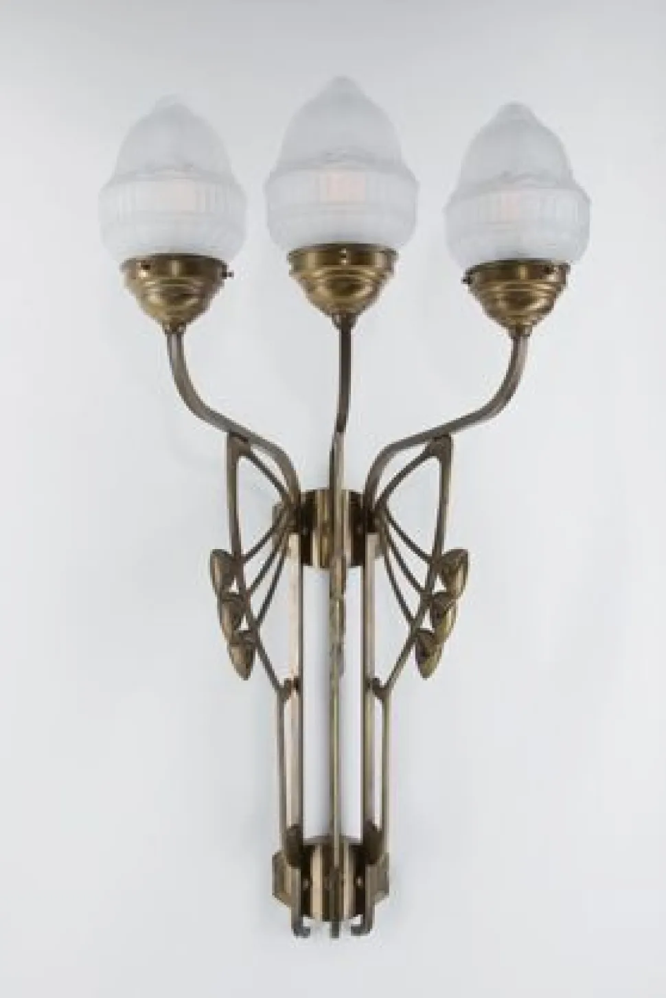 Jugendstil Wandlampe aus Messing und Glas