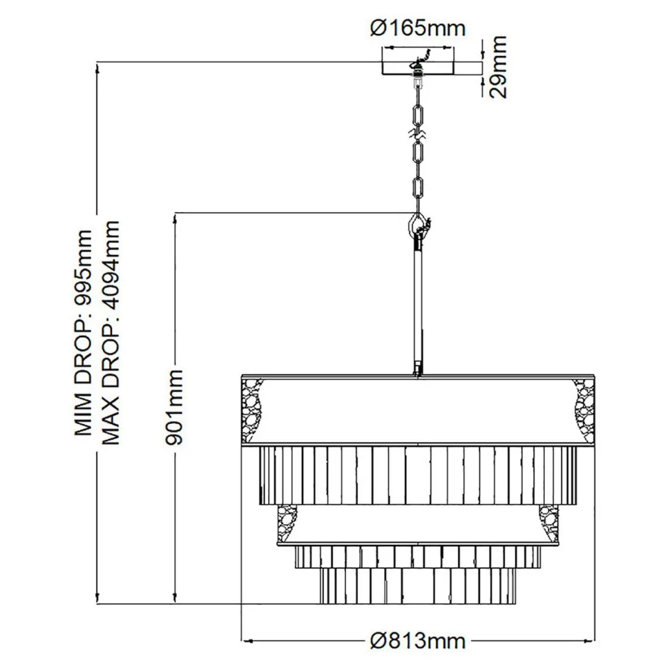 | Maße: | Breite: 813 mm | Hängetiefe: 995-4094 mm | Länge: 813 mm | Durchmesser: 813 mm | Höhe Schirm: 901 mm |