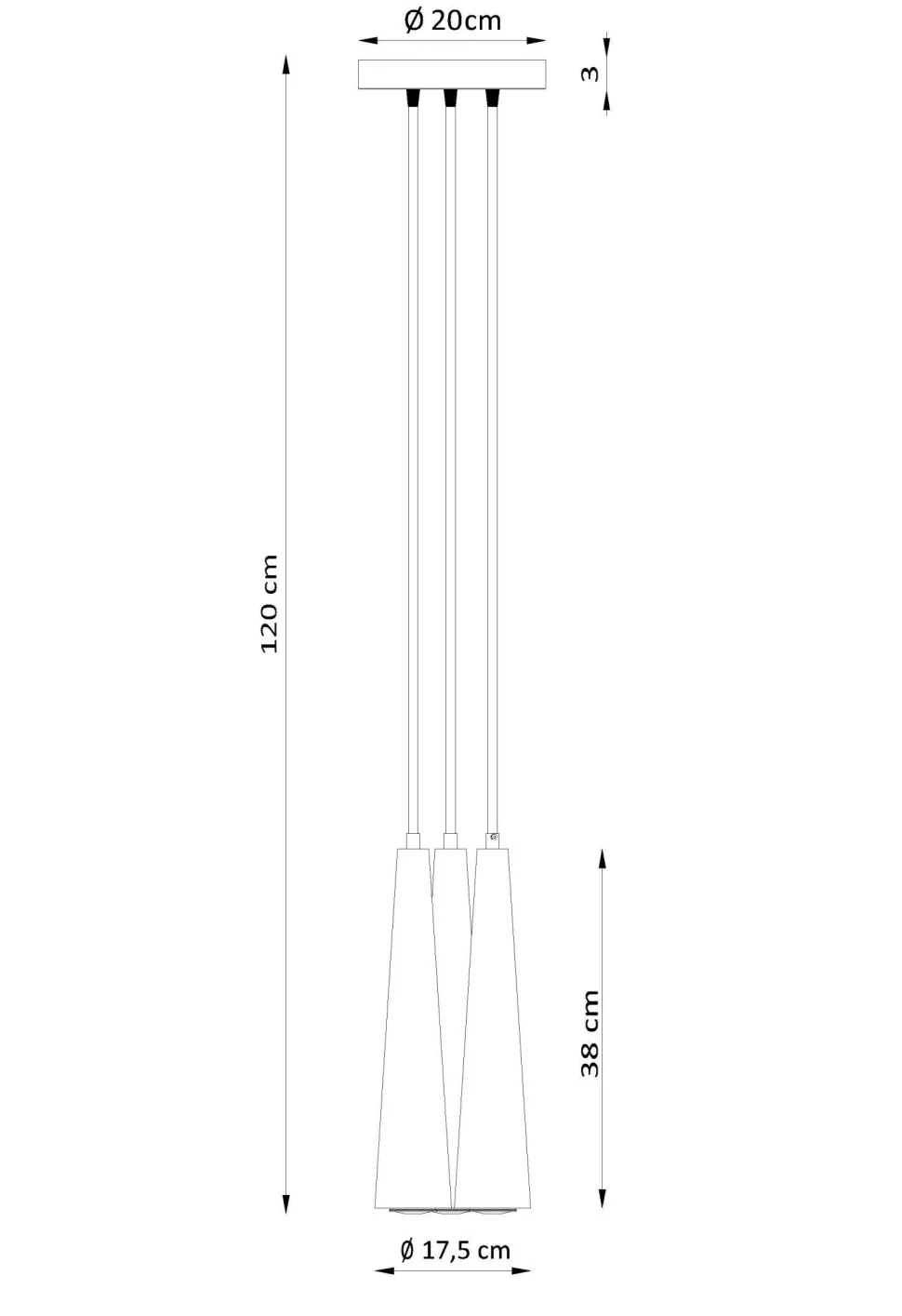 | Maße: | Breite: 200 mm | Hängetiefe: 1200 mm | Länge: 200 mm | Durchmesser: 200 mm | Durchmesser Schirm: 80 mm | Höhe Schirm: 380 mm | Durchmesser Sockel/Wandhalterung: 80 mm |