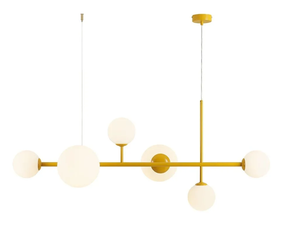Moderne Pendelleuchte aus Metall und Glas in Gelb und Weiß