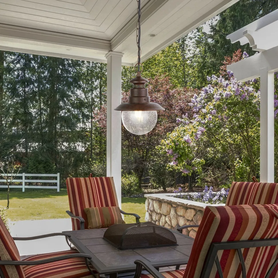 Maritime Pendelleuchte für den Außenbereich aus witterungsbeständigem Stahl und robustem Glas