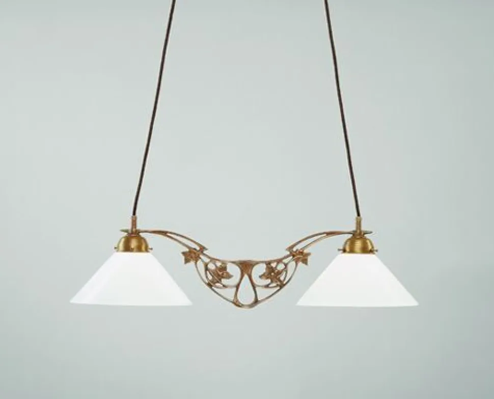 Jugendstil Pendelleuchte aus Messing und Glas