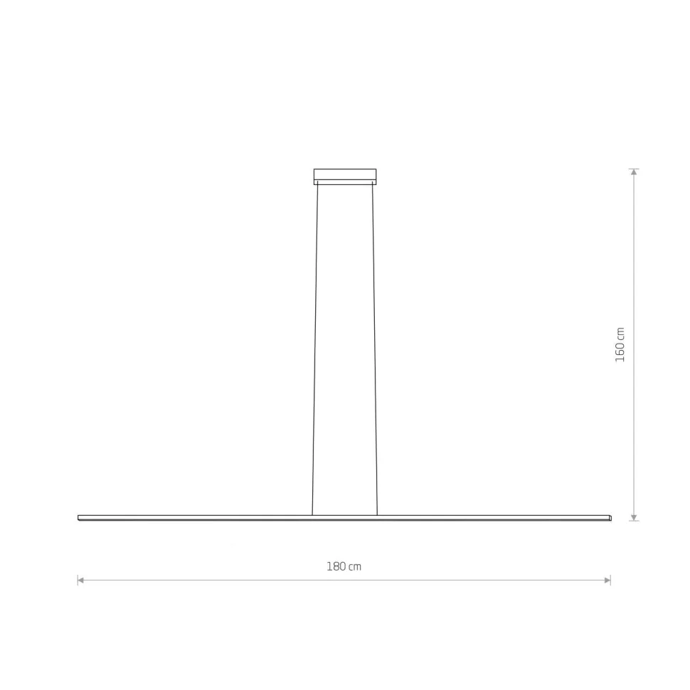 | Maße: | Breite: 19 mm | Hängetiefe: 1600 mm | Länge: 1800 mm | Höhe Schirm: 19 mm | Durchmesser Sockel/Wandhalterung: 40 mm |