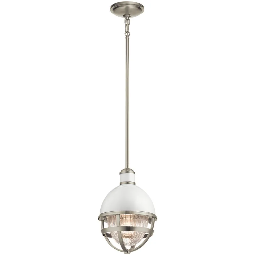 Runde Pendelleuchte aus Metall und geriffeltem Glas im Vintage Design